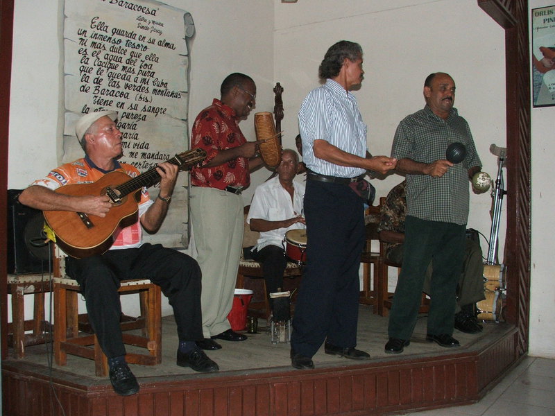 La casa de la Trova “Victorino Rodriguez” de Baracoa, se encuentra en una esquina del Parque Central y es el punto de partida de la música en la ciudad. Con más de 40 años en funcionamiento es el lugar de difusión de la música popular desde la tarima localizada en su interior, y con una línea de sillas que marcan la improvisada pista de baile , los turistas, previo pago de entrada, se mezclan con los locales para bailar a ritmo de son en directo, amenizando las presentaciones su “speaker” Yorgi. Los ventiladores del techo y las ventanas que dan a la calle bien abiertas, no son suficientes para apagar el calor, pero ayudado por un mojito o daikirí, la situación se hace más llevadera a la vez que desaparecen vergüenzas entre los novatos a fin de empezar la noche baracoesa con sus primeros pasos de baile.