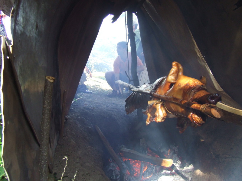 Una vez cocido, es troceado y servido en el centro de la mesa hasta uno quedar totalmente saciado y disponerse a hacer la digestión tumbado cómodamente en una hamaca.