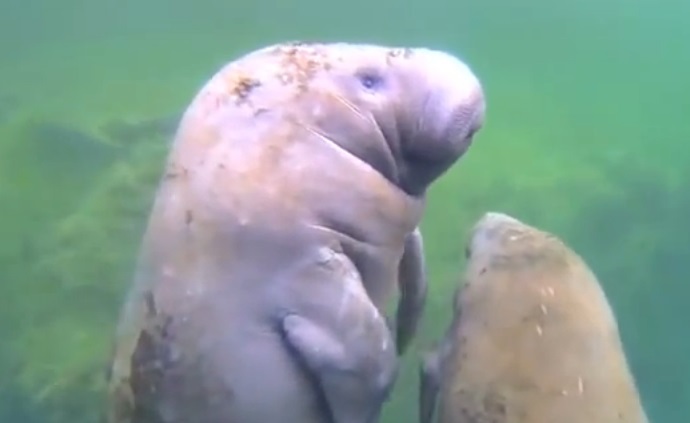 Estos mamíferos marinos, gordos y con cara de bonachones se pasan el dia comiendo las hierbas de los manglares, y aunque resulta difícil poder verlos, todo y moverse lentamente, con paciencia y insistencia en un bote a remos para no hacer ruido y estorbar su entorno, resultan afortunados avistamientos si estan en aguas muy bajas o justo en el momento en que salen a la superficie a respirar, cada alrededor de 5 minutos.