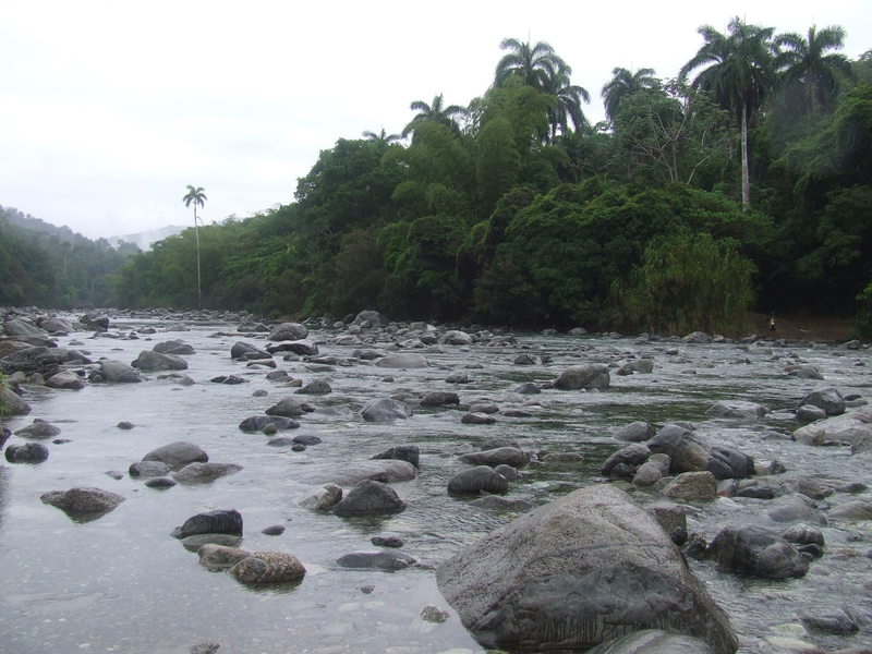 Ya de bajada, en el punto final y volviendo a cruzar el rio Duaba, se agradece un refrescante baño bajo el implacable sol tropical.