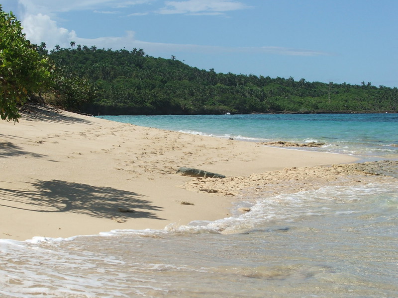 Playa Maguana, es quizás la más conocida de Baracoa por sus arenas blancas y finas y con una barrera de coral a 150 metros mar adentro y rodeada de palmeras y uva caleta.